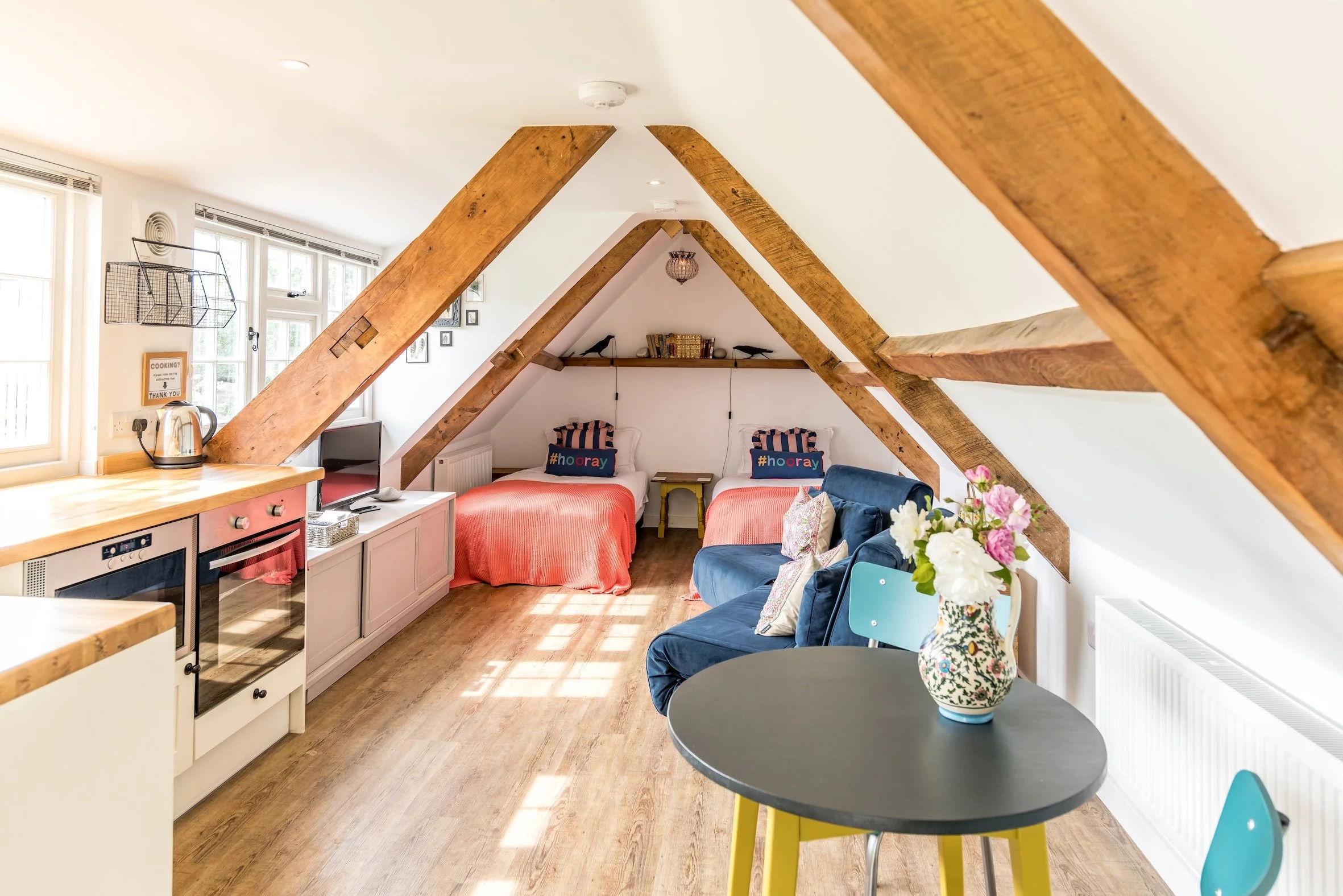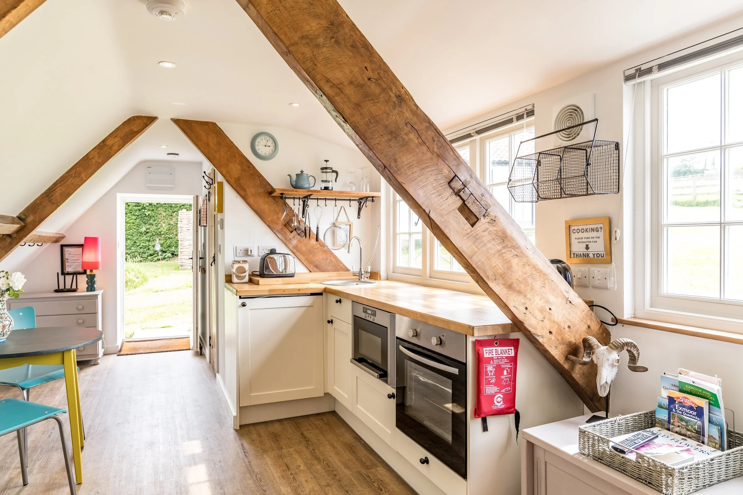 One studio apartment, “The Nest” with private entrance by on the first floor the Retreat Cottage. Double or twin singles, kitchenette, ensuite shower room and meadow views. Complimentary towels, bath robes, hair dryer and Bramley toiletries.