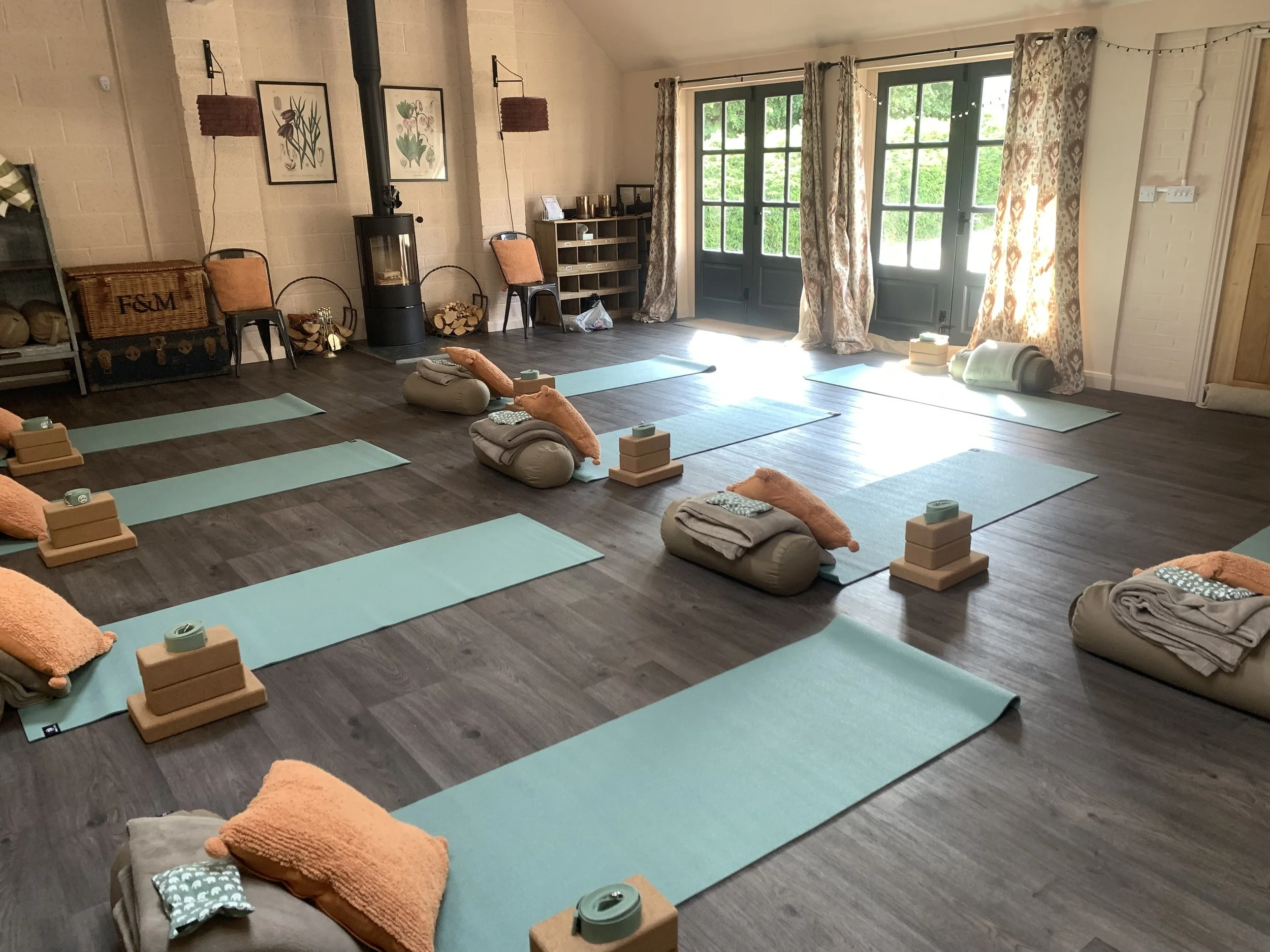 Fully equipped yoga studio with wood burner.