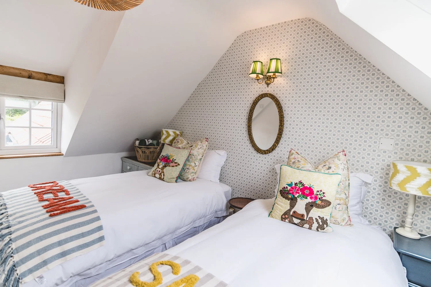 Two bedrooms as twin singles/or double beds and shared separate bathroom/shower and toilet located directly outside the rooms, access to the communal kitchen and cosy lounge with wood burner on the ground floor.