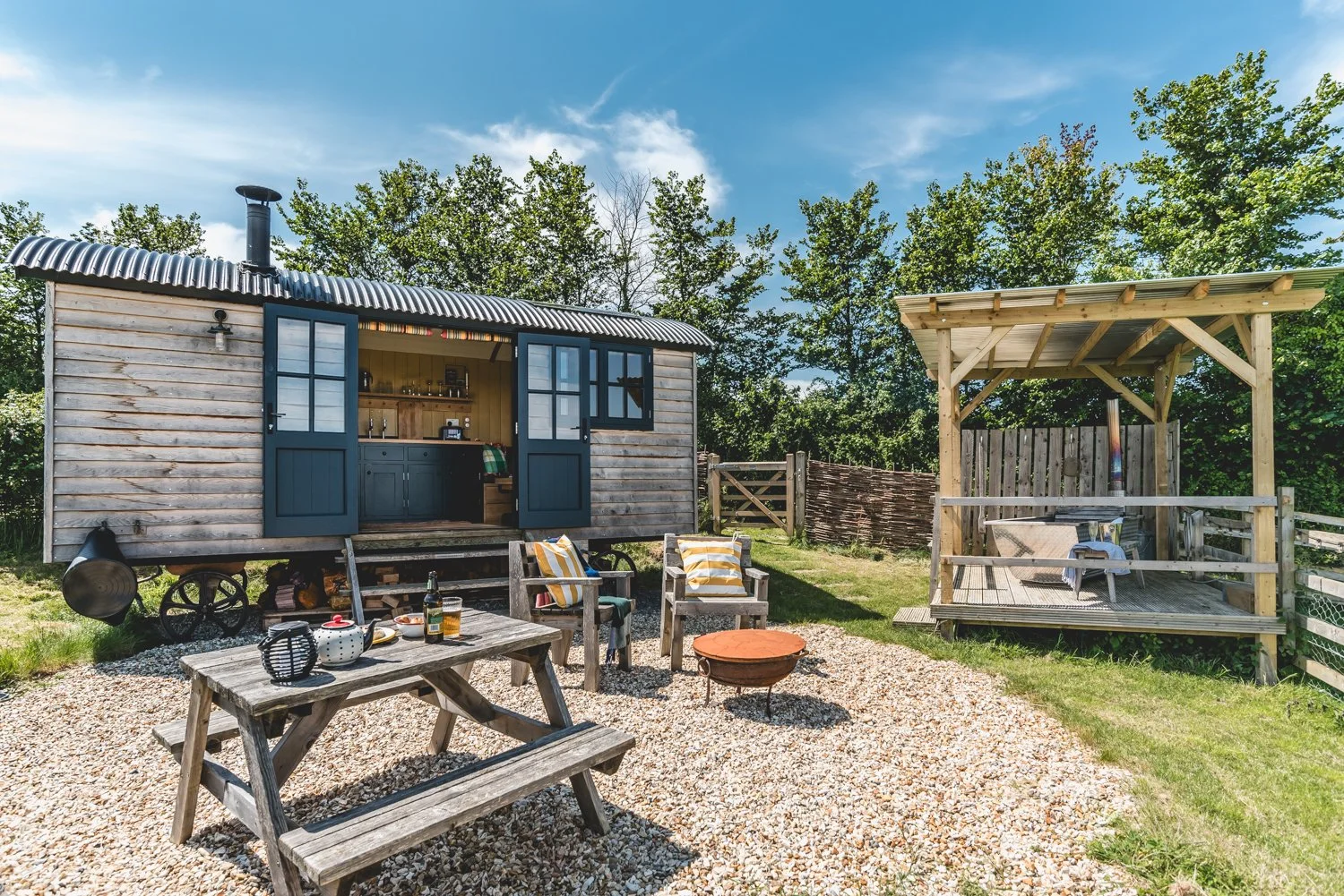 Please note: Shepherds Huts have their own private wood fired hot tubs.